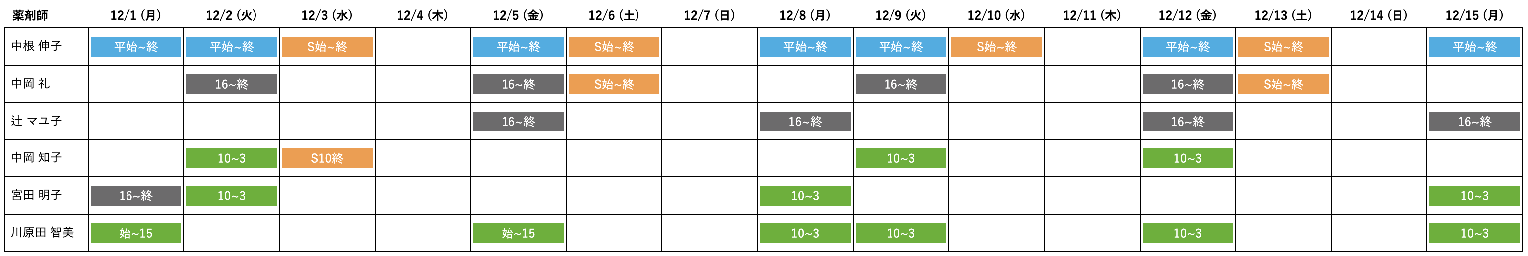 - 薬剤師は白衣と「薬剤師」と書かれた名札を着用